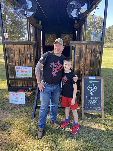 Just Axing has the safest mobile axe throwing trailer rentals in and around Jacksonville, Florida. Our lanes have the latest in axe throwing technology – we use anti-bounce borders and safety-designed targets that are easier to stick, safer, and more axe-citing.